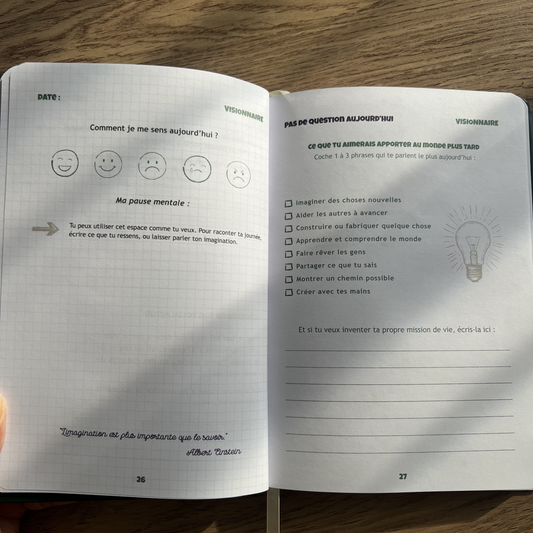Notre édition actuelle (Le carnet Confiance) est spécialement conçue pour les enfants de 6 à 12 ans. Les plus jeunes peuvent le faire accompagnés d'un adulte, et les plus grands en totale autonomie. (Psst... Vous avez un ado à la maison ? Notre toute nouvelle Édition Adolescents (12-17 ans) arrive fin mars !).