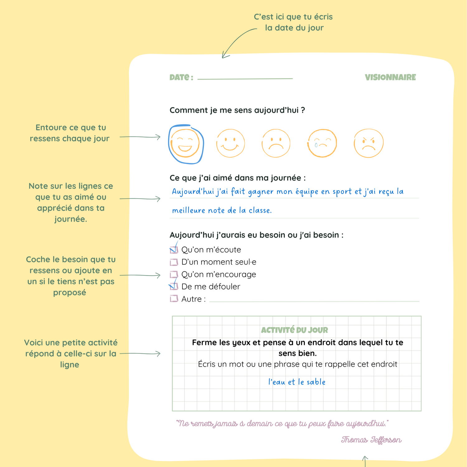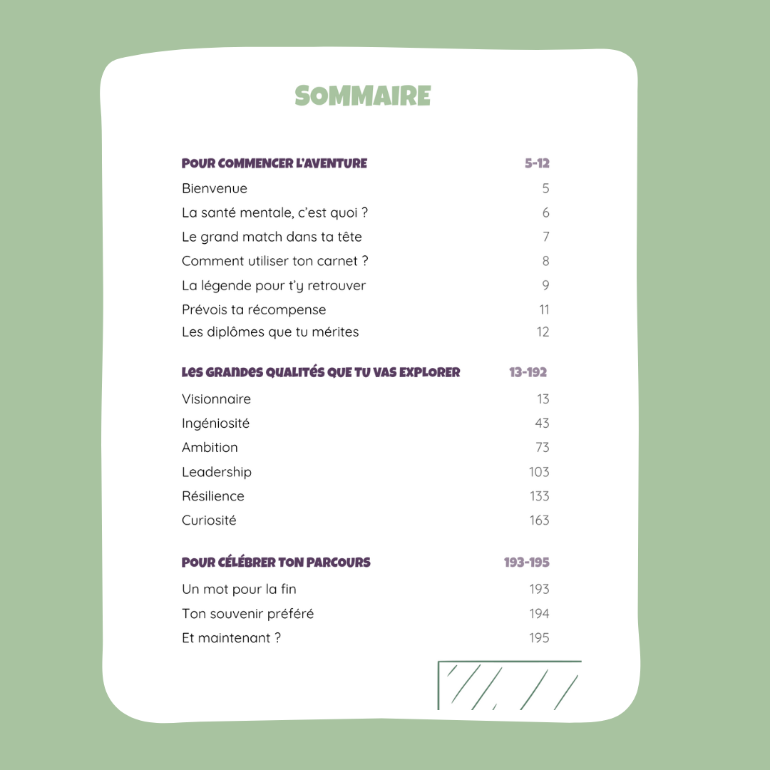 Chaque page respecte les principes de la santé mentale positive et du développement personnel, afin de renforcer la confiance et l’estime de soi.