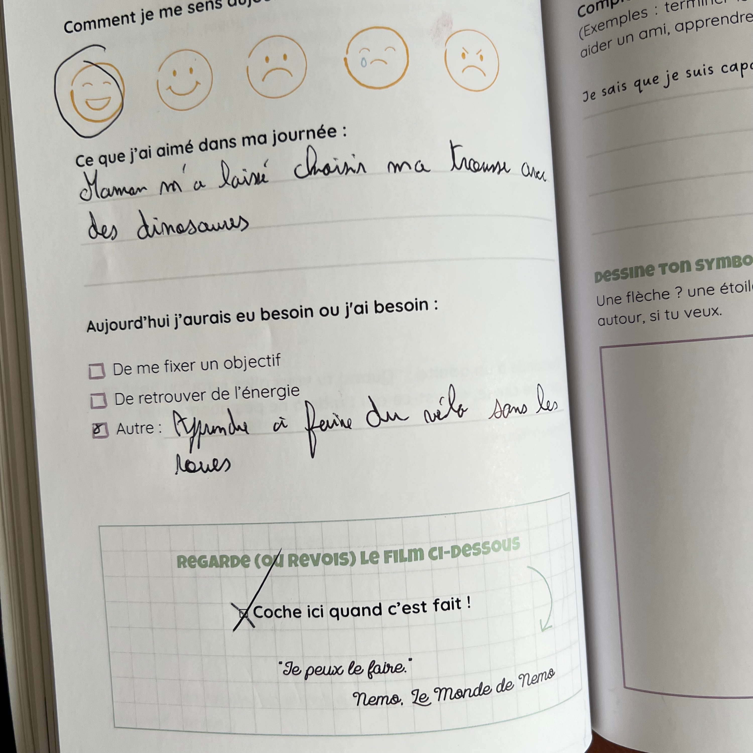 Pas du tout ! Le Carnet Confiance est l'inverse de l'école. Il n'y a ni notes, ni pression. C'est un espace ludique rempli de cases à cocher, de petits dessins et de questions amusantes. Il ne demande que 5 petites minutes par jour et devient très vite son moment préféré du soir.